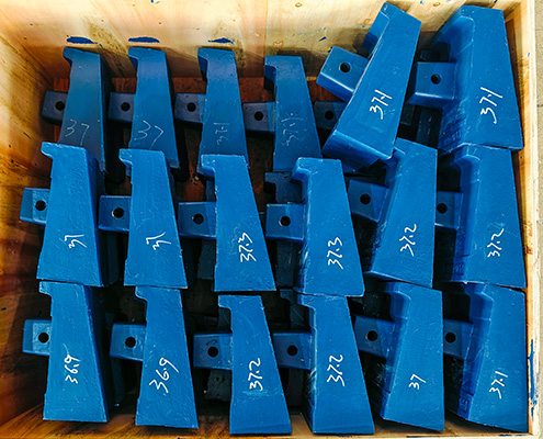 1,反擊破磨損件:板錘、反擊板、邊護(hù)板及其他磨損件 2,錘破磨損件:錘頭及其他磨損件 3,球磨機(jī)磨損件:襯板、溜槽襯板及其他磨損件 4,挖掘機(jī)、裝載機(jī)和卡車可用耐磨塊,耐磨板 |